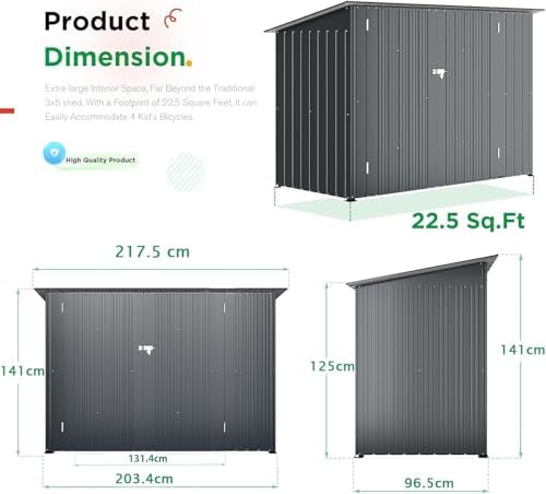 【Sturdy & Resilient】 Upgrades to each metal plate make the bike shed weigh 36 kg, surpassing cheaper alternatives, and significantly fortifying stability. Withstand severe weather conditions with exceptional wind resistance of approximately 60 Mph. |