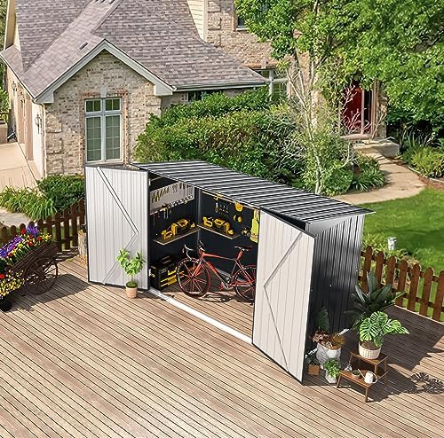 2.1×0.9m Metal Bike Shed, Lockable Galvanised Steel Garden Shed