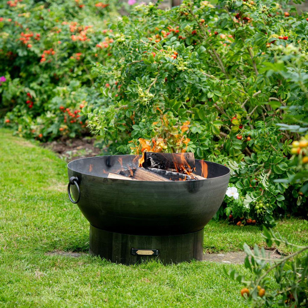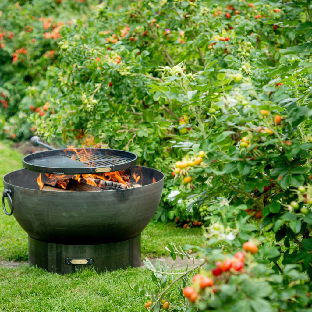 Our Solex Collection is made from 4mm steel giving a sturdy solid look to a contemporary design. With its sleek and elegant finish the Solex fire pit will bring a modern touch to any garden. The Solex fire pit in particular is ideal for windy locations as the fire sits lower in the bowl. Your logs will sit on top of a raised grate which will help provide ventilation for your fire.Accessorise your fire pitTo increase the cooking experience, we have also designed our Up-Down Swing Arm BBQ Rack which gives the ultimate versatility as it allows you to adjust the height giving you maximum cooking control. Have a look at our Accessories section where you’ll find lots more useful extras for cooking over and managing your fire. Choose from our practical accessories such as our Fire Pit BBQ Gloves or the Ash Rake, which is great for moving hot embers around to facilitate cooking. For some tasty recipe ideas, Charred and Foolproof are both BBQ inspired books written by Genevieve Taylor.Maintaining your fire pitNB: All our fire pits, lids and accessories will begin to rust immediately and will not maintain their black finish. However, this will not affect their long term durability. As all our fire pits are handmade from sheet steel which has naturally occurring blemishes, there may be very slight variations in the forging and finish. Please click here for handy tips on the safe use and care of your fire pit and accessories.