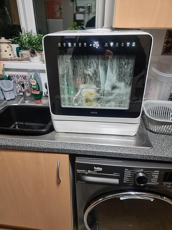 Having previously only had Comfees which were very disappointing as they lasted a year at most, Iām hoping the Hava machine lasts a lot longer! Itās day one of using it as it arrived yesterday, and I can say Iām very impressed with the quality, and design. However it didnāt reach 5 stars due to the water spilling everywhere as the jug spout is not directional. May I suggest an additional removable piece to guide the water into the top of the machine. (The only thing I liked about the comfee)! Otherwise it washes items well, is like a tardis⦠itās huge inside and fits a lot of dirty plates and pots! Is not at all noisey, functions as it should with brilliant options even for fruit and baby bottles! Itās a heavy beast you certainly get a quality product for the price! So far so good!!