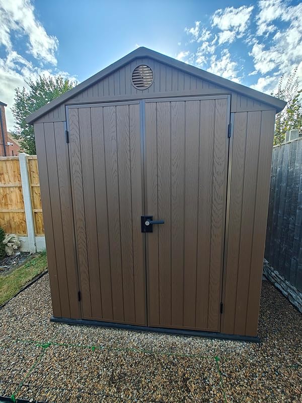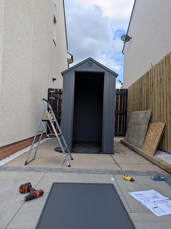 Great shed that is a handy alternative to a wooden shed. I have originally ordered a wooden one but as I am renting and seeing the quality of the sheds for the price these days I was put off and chose a plastic shed instead.I did my pre reading on the difficulty of assembly and was concerned by a couple of reviews here, but honestly, I donāt know how they could get it so wrong. It had clear instructions that were easy to follow. I will say that not all panels are marked but itās easy enough to figure out what is what. It did take a while to build however, at around 4 hours.The roof is the most difficult part and why I have knocked a star off. Unfortunately, the instructions tell you to bend panels to get them back into a slot when fitting the roof. Even with plastic shims I have used on fitting car interiors, we did damage a couple of the panels doing as instructed. Iām not even particularly strong so that was disappointing.Otherwise the plastic quality is fantastic and much better than some of the other thinner walled solutions out there.The doors did rub initially but seem to be lined up perfectly now.Finally there is no water ingress in the last month since purchasing (Feb 2026) which is probably as bad as it is going to get for the shed.Finally, it was packaged well and a bespoke haulage firm delivered it and placed it in my back garden. At 60kg you wouldnāt want to be doing that yourself!Very happy with it!