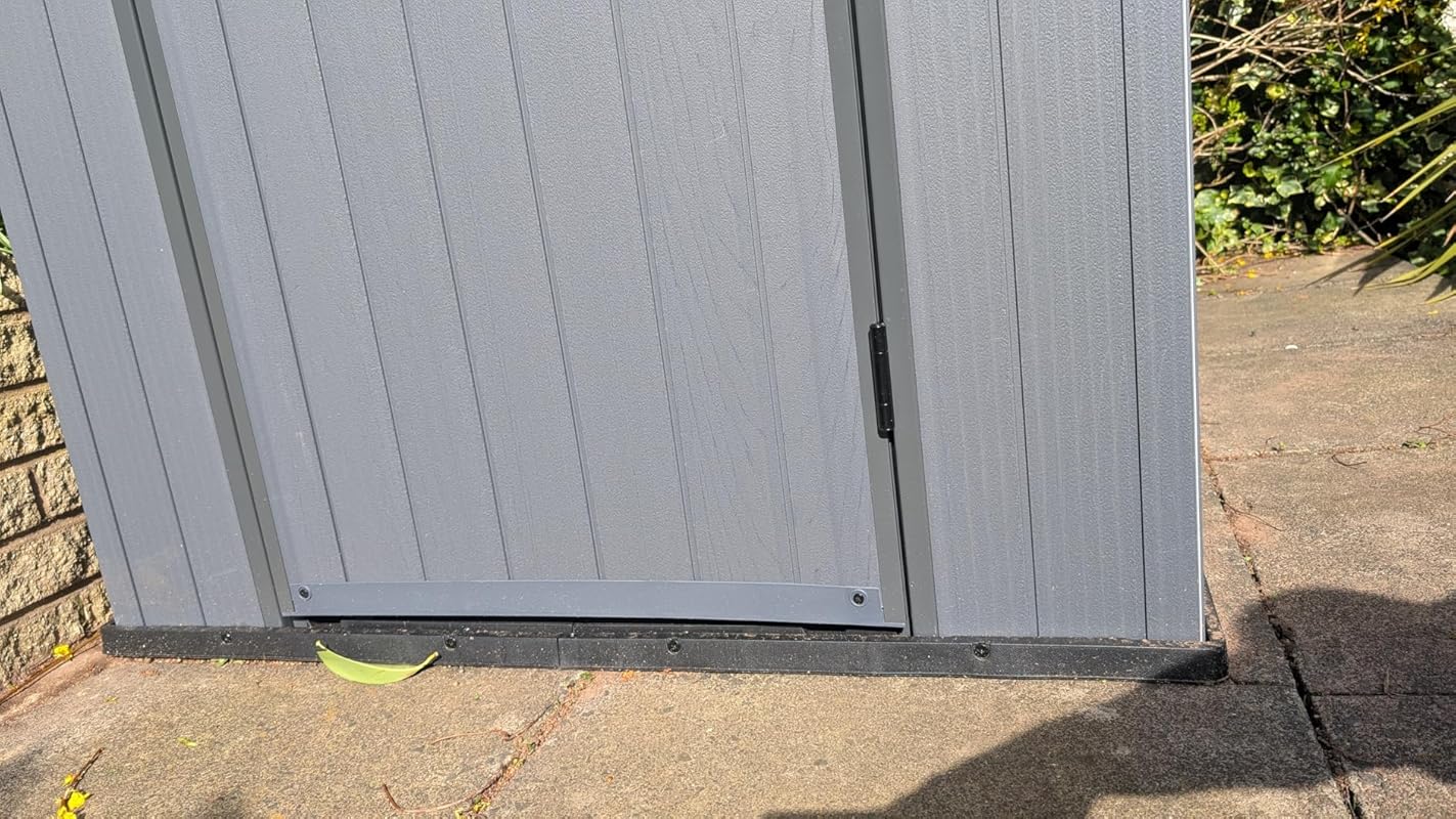 Grabbed this while it was on sale (Ā£299) to replace a slightly larger timber shed that was incorrectly installed by the previous owners of the house and starting to rot.This arrived in a single box which is quite bulky and heavy to move, Amazonās delivery was fantastic however leaving it in the garden even though no one was there to instruct them.The box did have everything included, a couple of panels did have some scuffs on them but I wasnāt going to go through the hassle of asking for them to be replaced, just tried to use them for panels facing the fence.Assembly was relatively simple, took around 5 hours on my own (Would be a lot easier with an extra pair of hands, but I was rushing to get it built before expected rain so did it on my own).The instructions are relatively straightforward and easy to follow, just take your time and read them again if you get stuck.The most difficult parts to assemble are:1- getting the second roof panel of each side to slide into position without either breaking the panel itself, or your own fingers, it takes a lot of patience and do try to avoid hitting the ends too hard with a mallet, you will ācrushā them if not careful.2- Screwing the door hinges into the metal frame, this was incredibly frustrating and took too much time for no good reason, the pre-drilled holes are simply drilled too small for the screws provided, using the 3 mm drill bit didnāt make them any better, and using the 4 mm made them too big, so it was between using plastic plugs to get the screws to bite, or wait for the next day to grab some different screws, I went for the plastic plugs and the doors are still standing.The shed looks good once assembled, the doors did line-up with little effort (Wouldnāt have any issues on a solid base, my advice? Do NOT install PVC sheds on a gravel base, unless the base is guaranteed to be 110% level), and make sure you anchor it well, it is super light and will most likely be blown away if the wind was at the right speed and direction.The shed should be a lot easier to maintain compared to timber ones, but the compromise is the stability of it, it is very risky to lean anything on the walls like I did in the old timber one, you can literally feel the whole structure leaning when you do that (Even a lightweight bike on the wall, I soon took it off and had the bike rest on a heavy box in the shed instead).It has so far proved to be watertight after a few torrential downpours, weather is also turning a bit Autumnal and Winter will test its frost proofing capabilities.I am generally happy with it and would recommend it, will also update if encountered any issues in the future, otherwise please assume all is well.