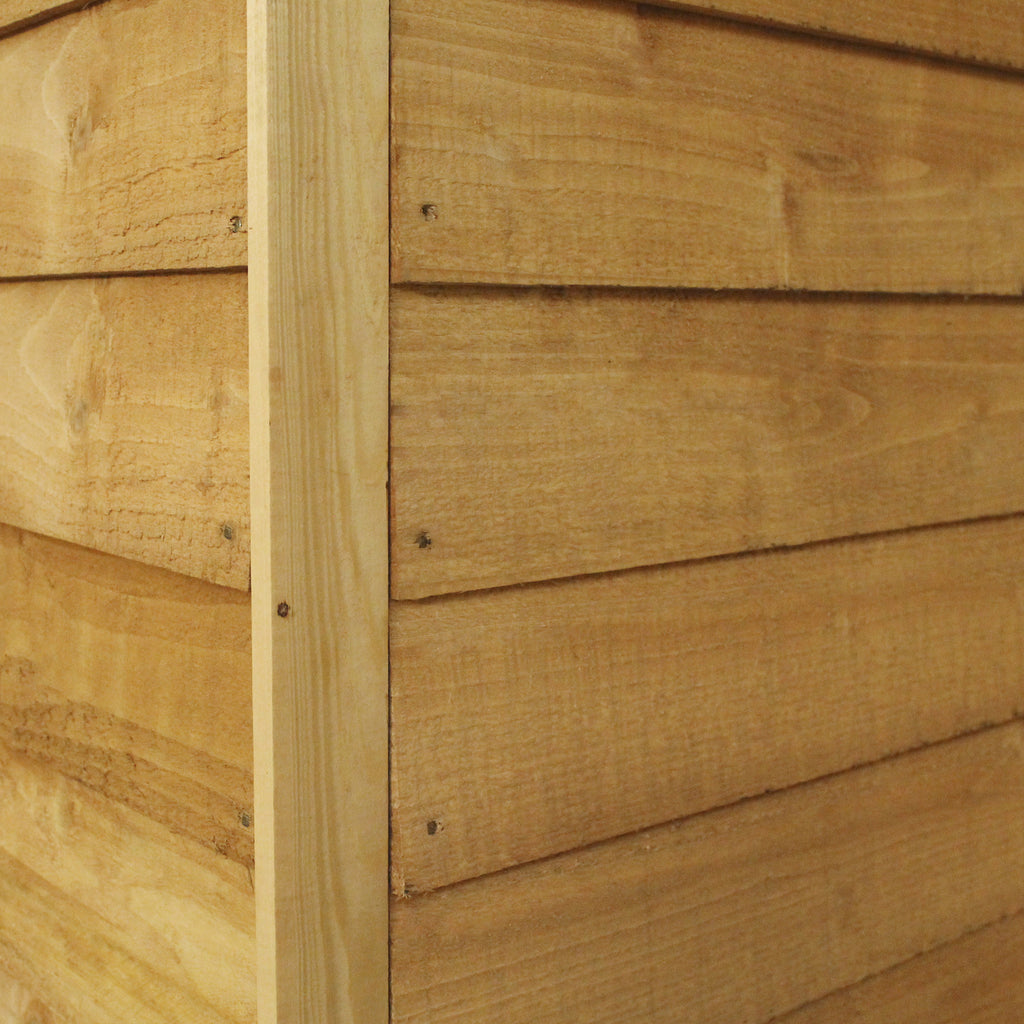 The walls of this garden building are made using horizontal boards that overlap each other, this traditional method of construction creates a solid panel that encourages rain water to run off the building, protecting your stored possessions from the elements. Solid sheet board is used to form the floor and roof, a durable material that is made up of several layers of tightly compacted oriented strands. Solid sheet board is perfect for everyday use and general storage.
