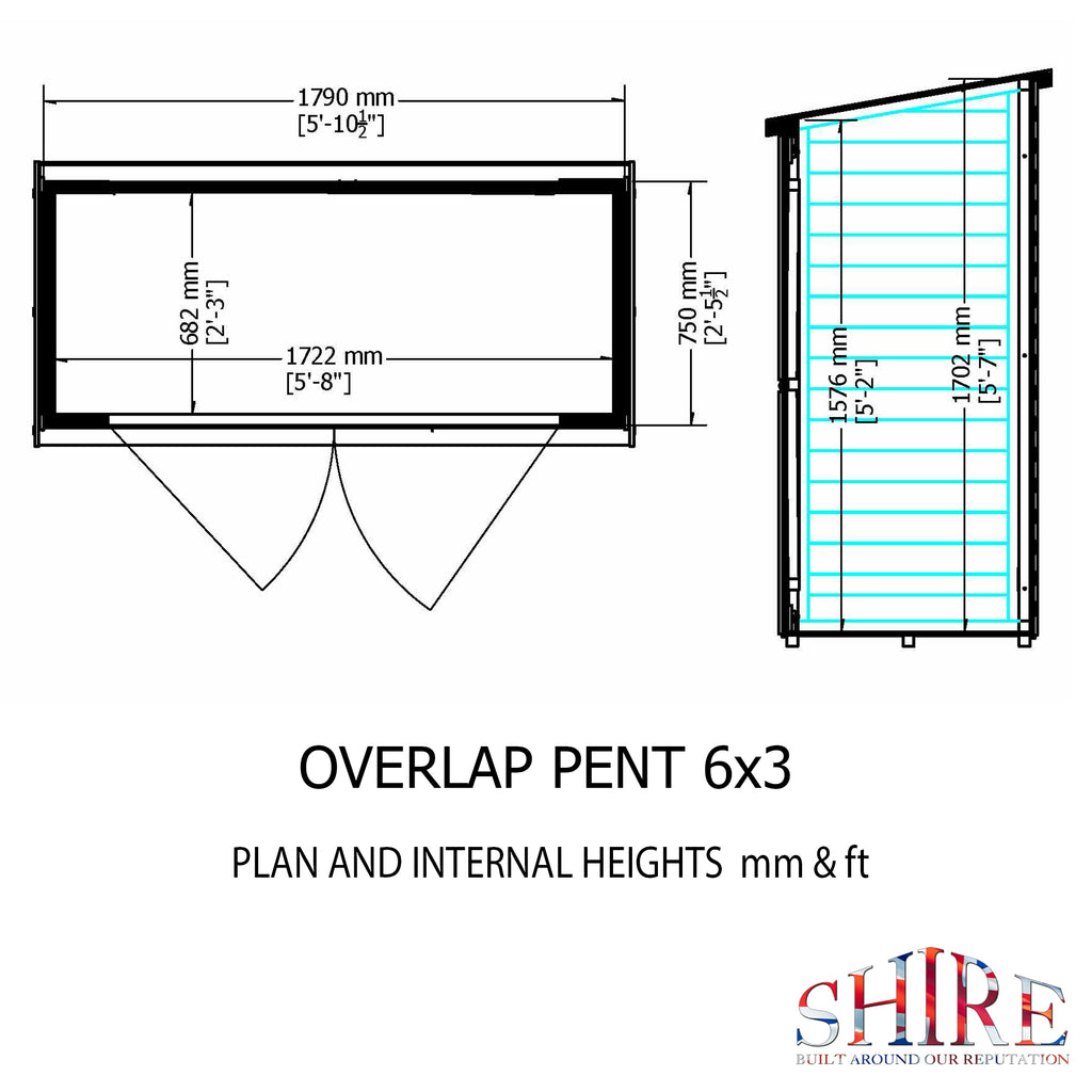 Shire Pressure Treated Overlap Range Pent Double Door (6×3) OVED0603POL-1AA 5060490134215