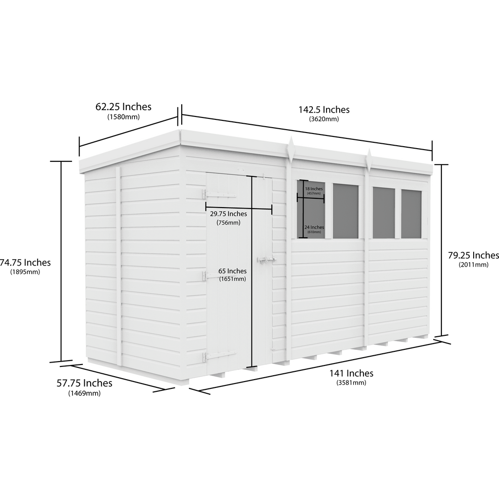 Total Sheds (12×5) Pressure Treated Pent Shed