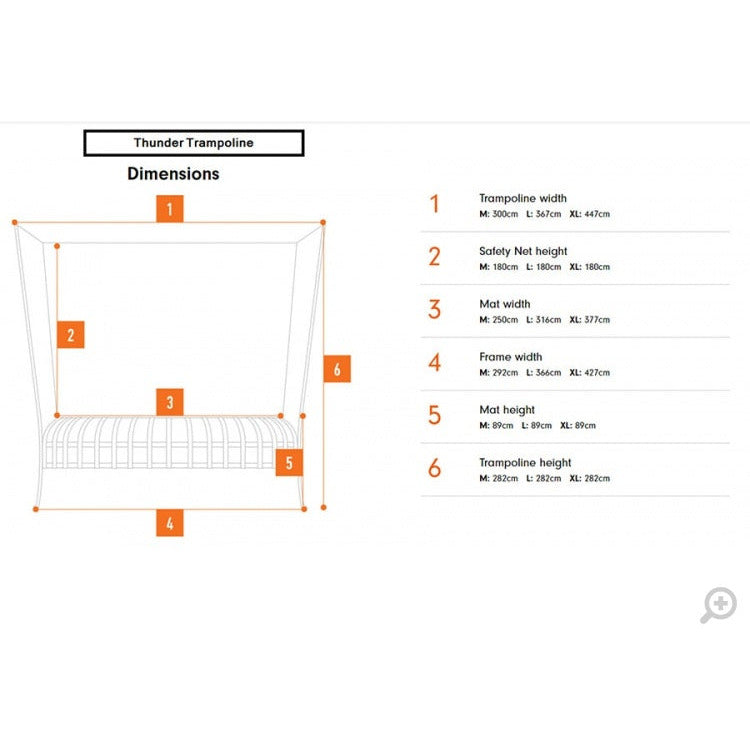 A heavy-duty UV resis.tant mat features the Vuly HexVex game with printed icons. It’s just perfect for inventing trampoline jumping games. The extra strong but superfine netting enclosure keeps you safely on the Thunder trampoline!
